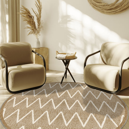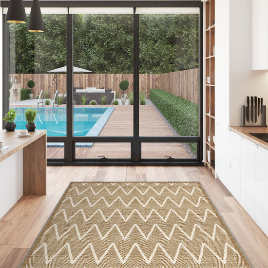 - Jute-Inspired Pattern: The zig-zag pattern and natural tones of this rug create a relaxed, organic vibe, perfect for earthy and rustic interiors.