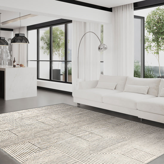 Theron Geometric Beige Rug – Modern Elegance in Every Line