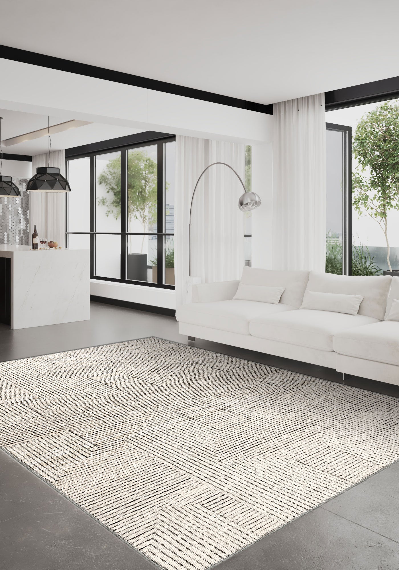 - Geometric Sophistication: The Theron Geometric Beige Rug adds a refined, contemporary touch to any room with its modern, minimalist pattern.