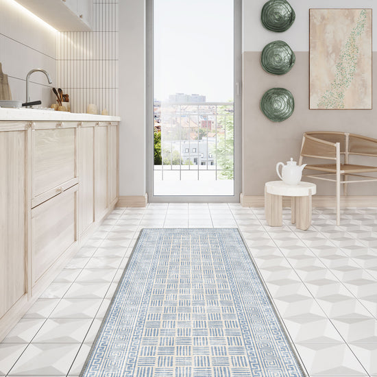 If you love geometric rugs but want something light and uplifting, Vincent in blue delivers symmetry without heaviness and detail without distraction.